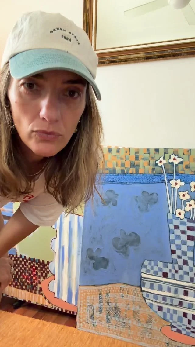 Introducing the first two 91x91cm originals in a new, evolving series—Stillness in Blue and Not So Still. One calm and cerulean, one vibrant and leafy, both featuring my new hand-painted checkered details. Explore these first two arrivals, available now with FREE shipping Australia-wide.